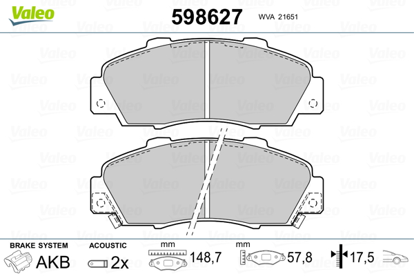 VALEO 598627 - Sada brzdových platničiek, vždy 4 kusy v sade