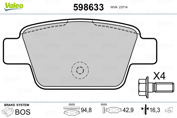 VALEO 598633 - Sada brzdových platničiek, vždy 4 kusy v sade