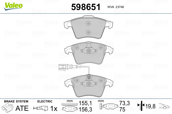 VALEO 598651 - Sada brzdových platničiek, vždy 4 kusy v sade