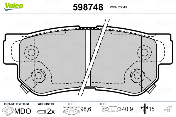 VALEO 598748 - Sada brzdových platničiek, vždy 4 kusy v sade