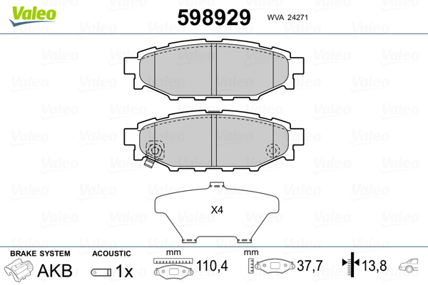 VALEO 598929 - Sada brzdových platničiek, vždy 4 kusy v sade