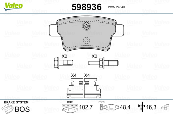 VALEO 598936 - Sada brzdových platničiek, vždy 4 kusy v sade