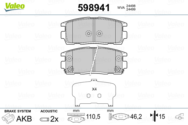 VALEO 598941 - Sada brzdových platničiek, vždy 4 kusy v sade