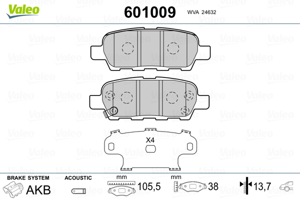 VALEO 601009 - Sada brzdových platničiek, vždy 4 kusy v sade