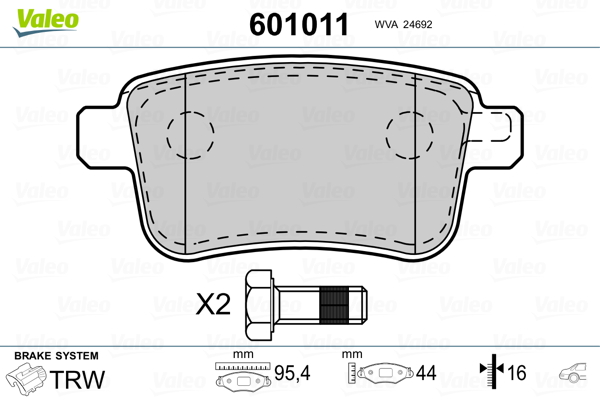 VALEO 601011 - Sada brzdových platničiek, vždy 4 kusy v sade