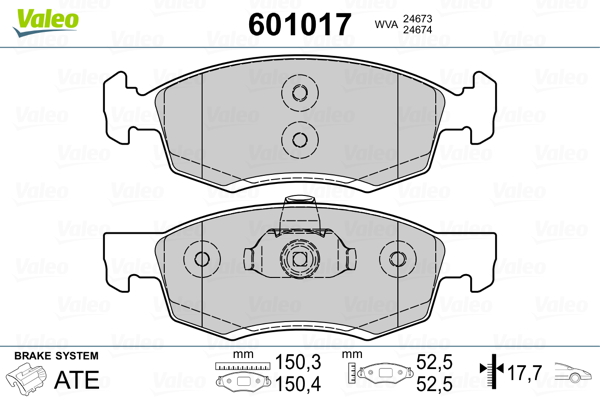 VALEO 601017 - Sada brzdových platničiek, vždy 4 kusy v sade