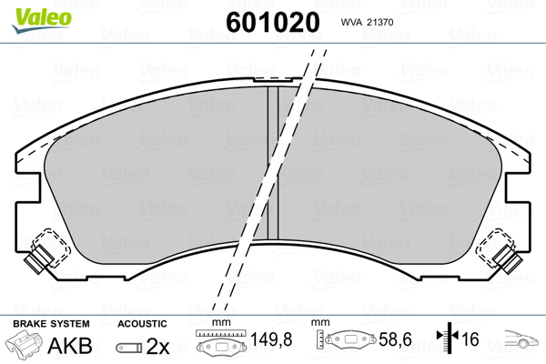 VALEO 601020 - Sada brzdových platničiek, vždy 4 kusy v sade