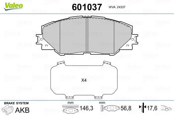 VALEO 601037 - Sada brzdových platničiek, vždy 4 kusy v sade