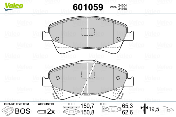 VALEO 601059 - Sada brzdových platničiek, vždy 4 kusy v sade