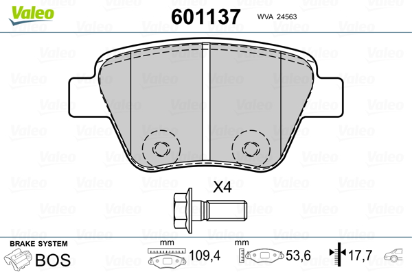 VALEO 601137 - Sada brzdových platničiek, vždy 4 kusy v sade