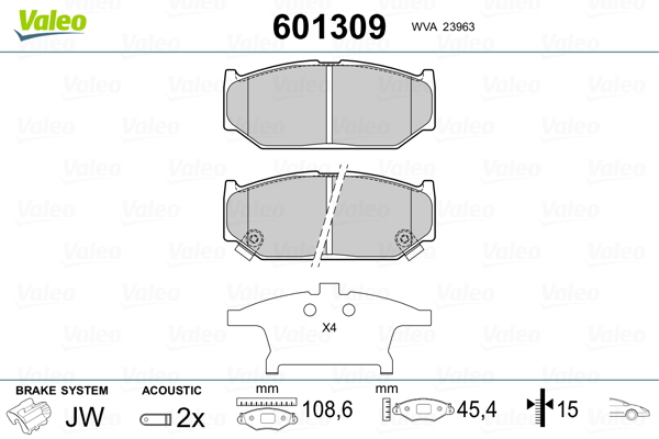 VALEO 601309 - Sada brzdových platničiek, vždy 4 kusy v sade
