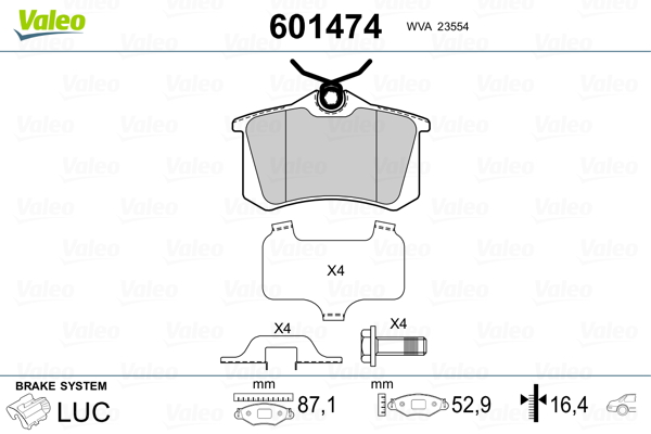 VALEO 601474 - Sada brzdových platničiek, vždy 4 kusy v sade