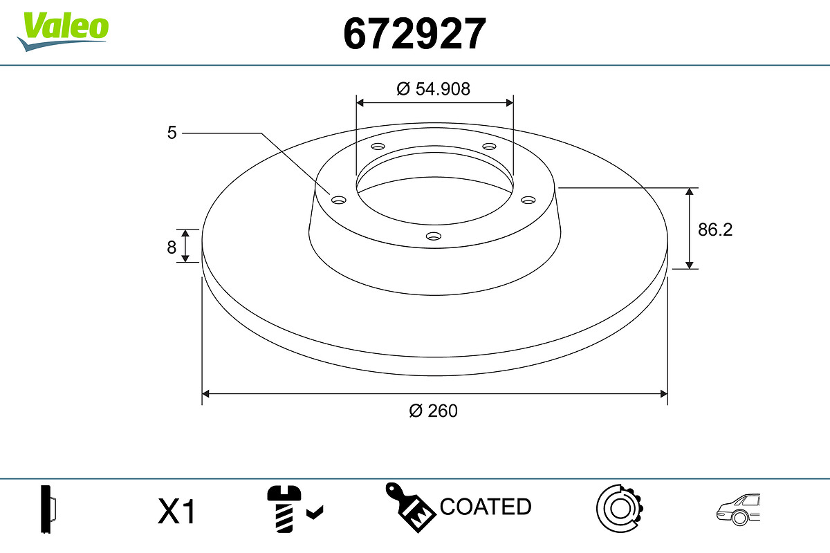 VALEO 672927 - Brzdový kotúč