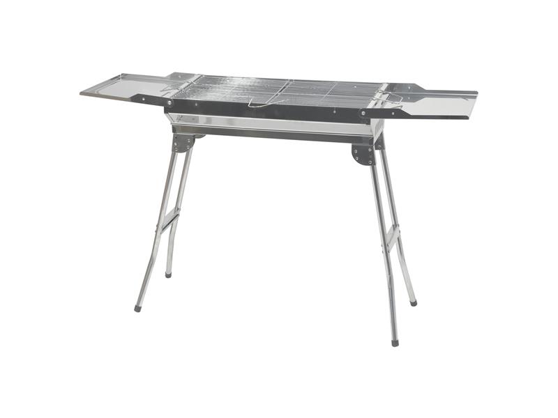 Konstrukce je vyrobena z kvalitní nerezové oceli s lesklým povrchem. Stabilitu zajišťují vyklápěcí nohy. Rozměry grilu 112 x 30 x 71 cm.