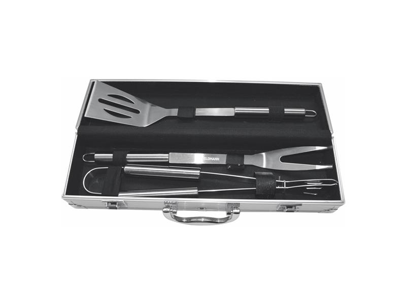 Sada grilovací FIELDMANN FZG 9014 3ks Sada náčiní na grilovaní 3ksTechnické parametry:- Grilovací vidlička- Grilovací lopatka- Grilovací kleště- Délka 35 cm- Hliníkový kufřík- Rozměry kufříku 37 x 10 x 8 cm