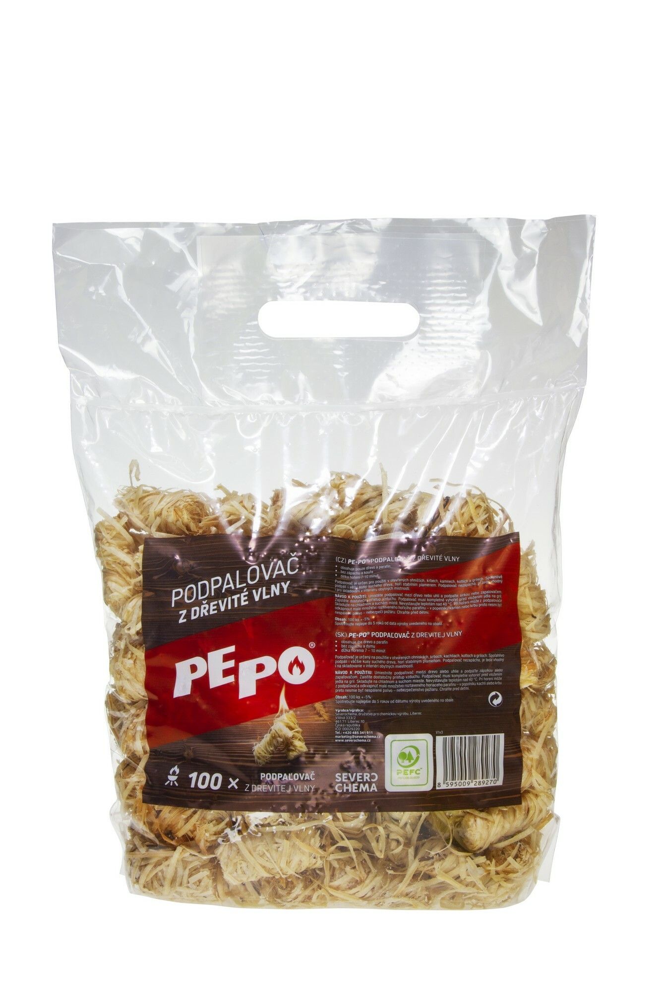 PE-PO podpalovač z dřevité vlny je určen pro použití v grilech, krbech, kamnech, kotlích a otevřených ohništích. Obsahuje pouze dřevo a parafín. Hoří 7-10 minut bez zápachu a kouře. Výrobek je vhodný ke skladování v interiéru obytných místností.