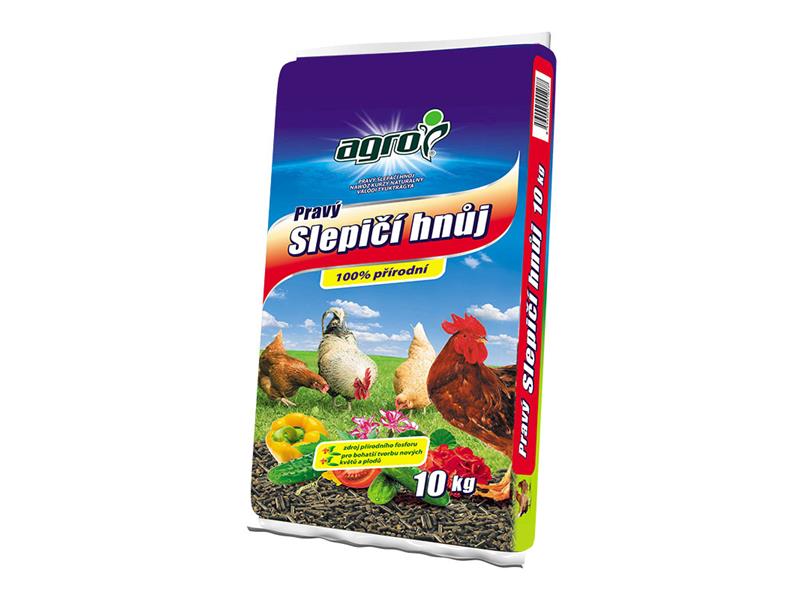 Agro Pravý slepičí hnůj je organické hnojivo vyrobené z drůbeží podestýlky s přidáním melasy, melasových výpalků. Používá se k základnímu hnojení před výsadbou, případně k přihnojování během vegetace ovoce, zeleniny, okrasných rostlin a dalších rostlin a plodin.Obsahuje potřebné živiny včetně přirozeného obsahu stopových prvků. Hnojivo zvyšuje sorpční kapacitu a biologickou aktivitu půdy a tím zlepšuje půdní strukturu.
