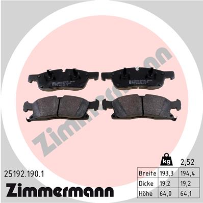 ZIMMERMANN 25192.190.1 - Sada brzdových platničiek, vždy 4 kusy v sade