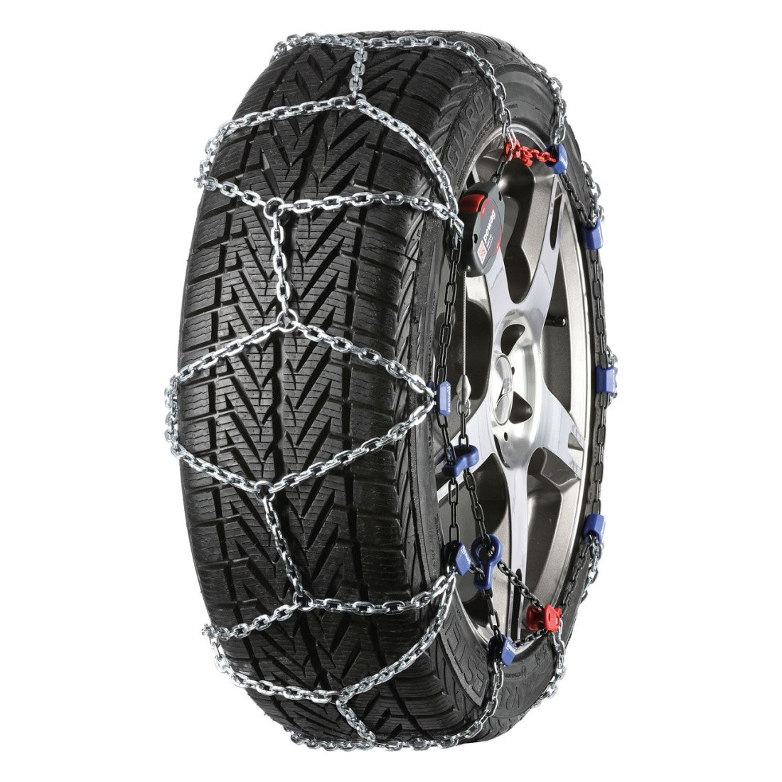 Sněhové řetězy Pewag Servo se po nasazení automaticky napínají . Díky patentovanému mechanismu se řetězy automaticky napnou na stojícím autě (na rozdíl od řetězů Snox, u kterých je pro napnutí třeba s autem popojet).